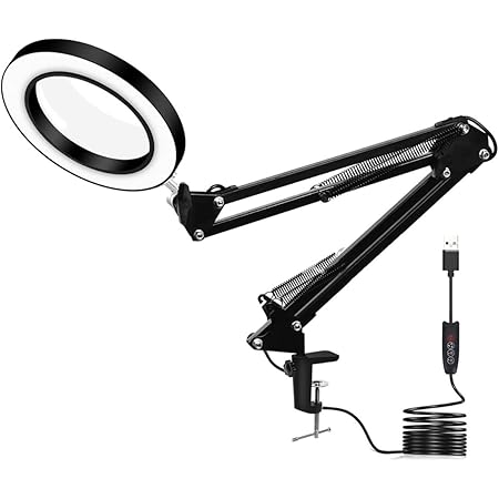 Tanice Magnifying Lamp 2-in-1 Magnifying Glass Desk Lamp with Stand and Clamp 5X 10X Magnifier LED Light USB Powered with 3 Adjustable Light Settings for Reading Hobbies Crafts Workbench. List of 5 Magnifying Glass with Light and Stand for reading or crafts. Handheld magnifying glasses illuminated desktop and bench mounted magnifiers from our Tools and Equipment range.